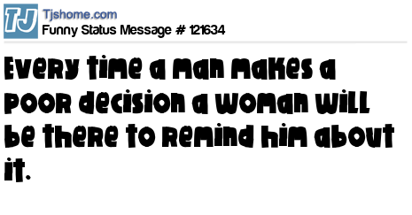 X says Every time a man makes a poor decision a woman will be there to remind him about it.