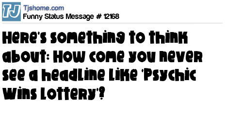 X says Here's something to think about: How come you never see a headline like 'Psychic Wins Lottery'?
