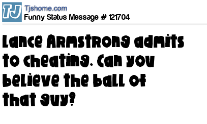 - # 121759 Say what you want about Lance Armstrong, buy I'm proud of him to finally having the ball to come clean.