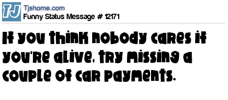 X says If you think nobody cares if you're alive, try missing a couple of car payments.