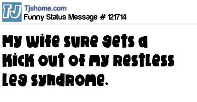 X is My wife sure gets a kick out of my restless leg syndrome.