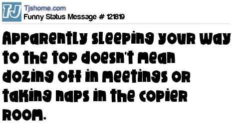 X says Apparently sleeping your way to the top doesn't mean dozing off in meetings or taking naps in the copier room.