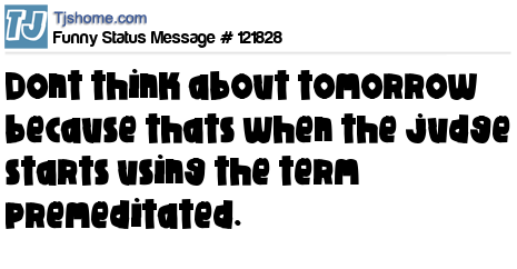 X Dont think about tomorrow because thats when the judge starts using the term premeditated.