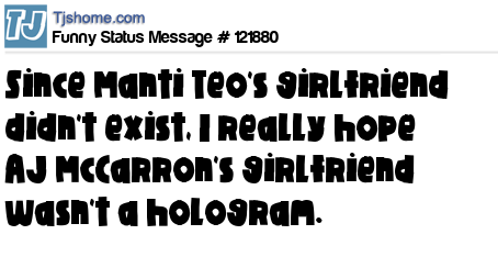 X is Since Manti Teo's girlfriend didn't exist, I really hope AJ McCarron's girlfriend wasn't a hologram.