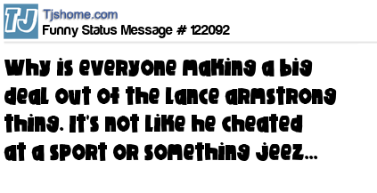 - # 122023 Lance Armstrong cheated this whole time? Yeah right...next thing you're going to tell me is that Subway's footlong sandwiches are only 11 inches long...silly people...