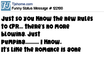 X Just so you know the new rules to CPR,,,, there's no more blowing, just pumping,,,,,,,,,,,,,, I know,, It's like the romance is gone