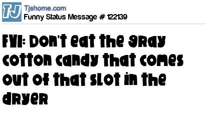 X FYI: Don't eat the gray cotton candy that comes out of that slot in the dryer