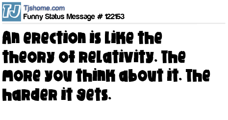 X says An erection is like the theory of relativity. The more you think about it. The harder it gets.
