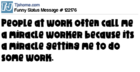 X says People at work often call me a miracle worker because its a miracle getting me to do some work.