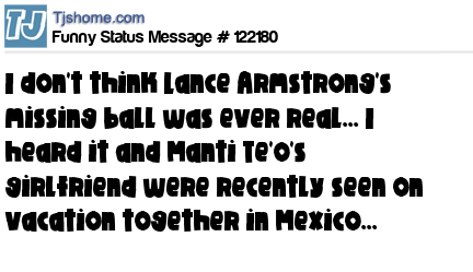 X is I don't think Lance Armstrong's missing ball was ever real... I heard it and Manti Te'o's girlfriend were recently seen on vacation together in Mexico...