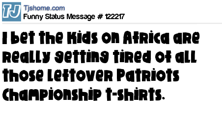 X is I bet the kids on Africa are really getting tired of all those leftover Patriots Championship t-shirts.
