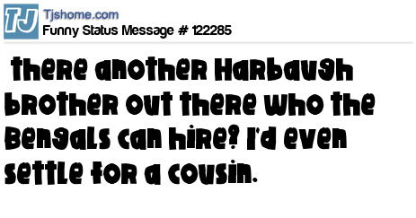X there another Harbaugh brother out there who the Bengals can hire? I'd even settle for a cousin.