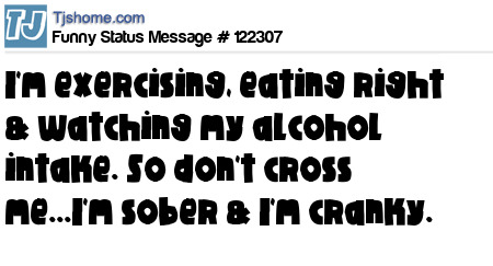 X I'm exercising, eating right & watching my alcohol intake. So don't cross me...I'm sober & I'm cranky.