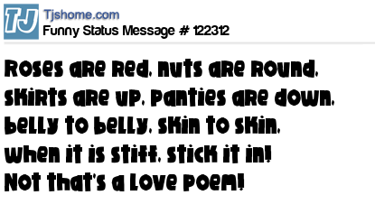- # 144900 Roses are red Nuts are round Skirts are up Panties are down Belly To Belly Skin to Skin When its Stiff Stick It In