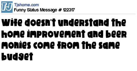 X says wife doesn't understand the home improvement and beer monies come from the same budget
