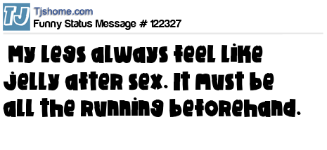 X is My legs always feel like jelly after sex. It must be all the running beforehand.