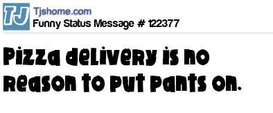 - # 123921 A pizza delivery guy knocked on my door & said, "I have a pizza delivery for your next door neighbor but no one is answering the door!" I replied, "No worries they use my door as their backdoor..." and now I have a "Do not disturb" poster on my door.