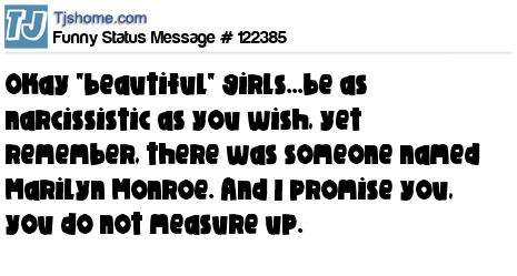 X Okay "beautiful" girls...be as narcissistic as you wish, yet remember, there was someone named Marilyn Monroe. And I promise you, you do not measure up.