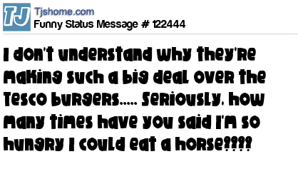 X says I don't understand why they're making such a big deal over the Tesco burgers..... Seriously, how many times have you said I'm so hungry I could eat a horse????