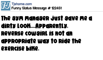 X The gym manager just gave me a dirty look....Apparently, reverse cowgirl is not an appropriate way to ride the exercise bike.