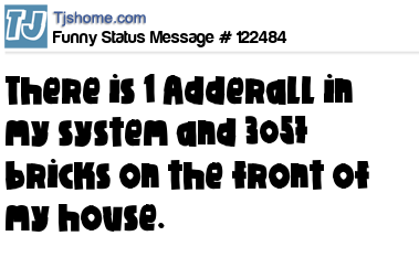 X says there is 1 Adderall in my system and 3057 bricks on the front of my house.