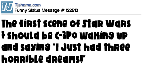 X The first scene of Star Wars 7 should be C-3P0 waking up and saying "I just had three horrible dreams!"
