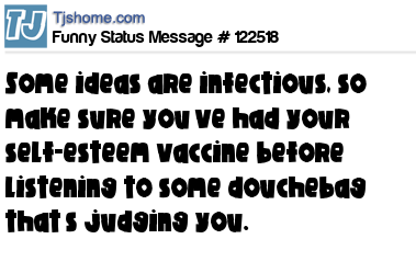 X says Some ideas are infectious, so make sure you’ve had your self-esteem vaccine before listening to some douchebag that’s judging you.