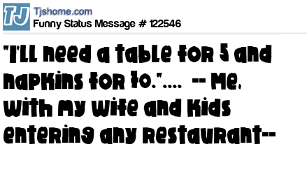 X "I'll need a table for 5 and napkins for 70.".... -- Me, with my wife and kids entering any restaurant--