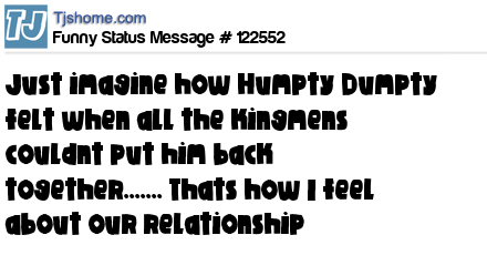 X is Just imagine how Humpty Dumpty felt when all the kingmens couldnt put him back together....... Thats how I feel about our relationship