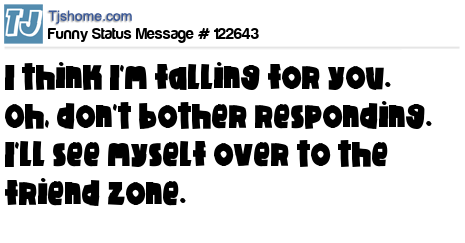 X says I think I'm falling for you. Oh, don't bother responding. I'll see myself over to the friend zone.