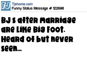 X says BJ’s after marriage are like Big Foot. Heard of but never seen…