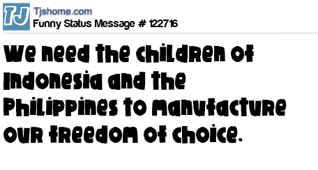 X We need the children of Indonesia and the Philippines to manufacture our freedom of choice.