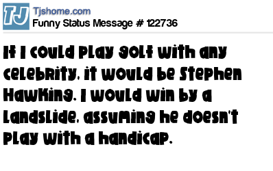X is If I could play golf with any celebrity, it would be Stephen Hawking. I would win by a landslide, assuming he doesn't play with a handicap.