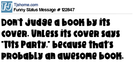 X Don't judge a book by its cover. Unless its cover says "T!ts Party," because that's probably an awesome book.