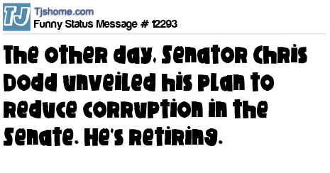 X The other day, Senator Chris Dodd unveiled his plan to reduce corruption in the Senate. He's retiring.