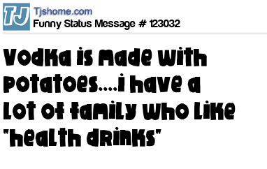 X says vodka is made with potatoes....i have a lot of family who like "health drinks"