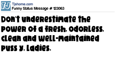 X says Don't underestimate the power of a fresh, odorless, clean and well-maintained puss y, Ladies.