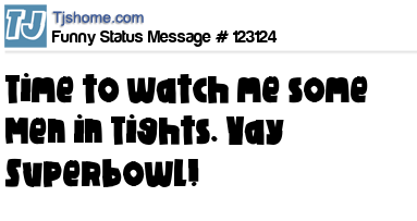 X Time to watch me some Men in Tights. Yay Superbowl!