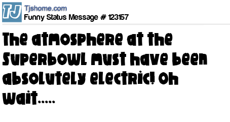X is The atmosphere at the Superbowl must have been absolutely electric! Oh wait.....