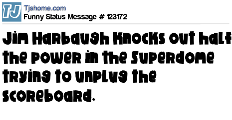 X is Jim Harbaugh knocks out half the power in the Superdome trying to unplug the scoreboard.