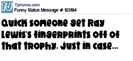 X Quick someone get Ray Lewis's fingerprints off of that trophy, just in case...