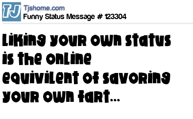 X says Liking your own status is the online equivilent of savoring your own fart...