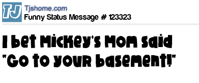 X says I bet Mickey's Mom said "Go to your basement!"