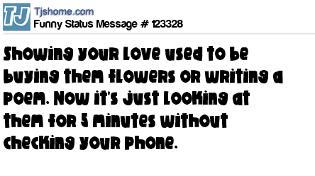 X Showing your love used to be buying them flowers or writing a poem. Now it's just looking at them for 5 minutes without checking your phone.