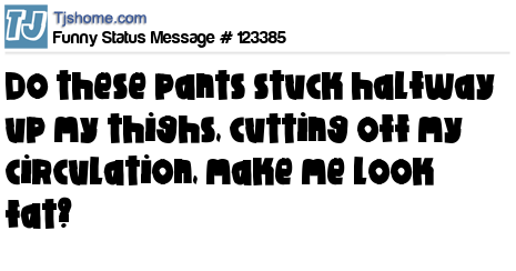 X says Do these pants stuck halfway up my thighs, cutting off my circulation, make me look fat?