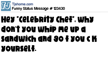 X says Hey "Celebrity Chef", why don't you whip me up a sandwich and go f you c k yourself.