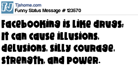 X Facebooking is like drugs; It can cause illusions, delusions, silly courage, strength, and power.
