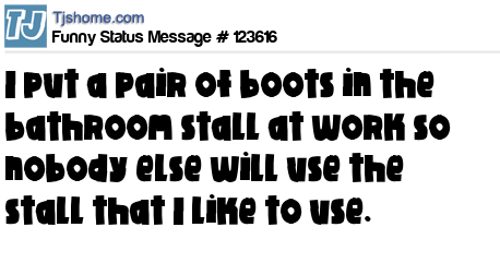 X  I put a pair of boots in the bathroom stall at work so nobody else will use the stall that I like to use.