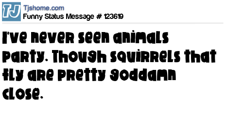 X says I've never seen animals party. Though squirrels that fly are pretty goddamn close.