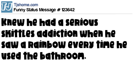 X  knew he had a serious skittles addiction when he saw a rainbow every time he used the bathroom.